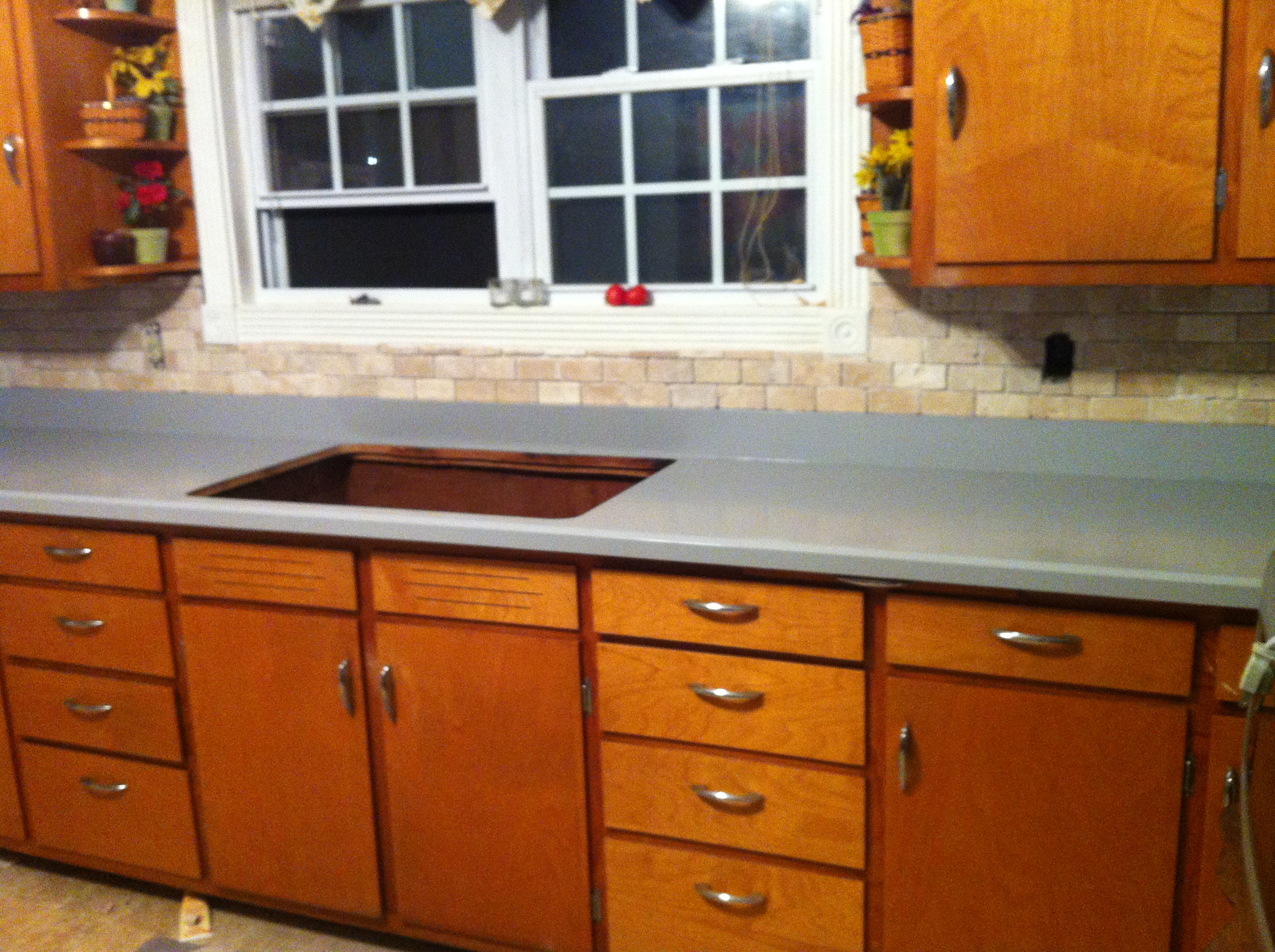 Now, as I mentioned, this project snowballed a bit. We took out the sink to paint the countertop. Then we realized how dingy and old the sink looked. Annnnnd it was already out anyway, so we replaced it with a shiny new cast iron one. Image