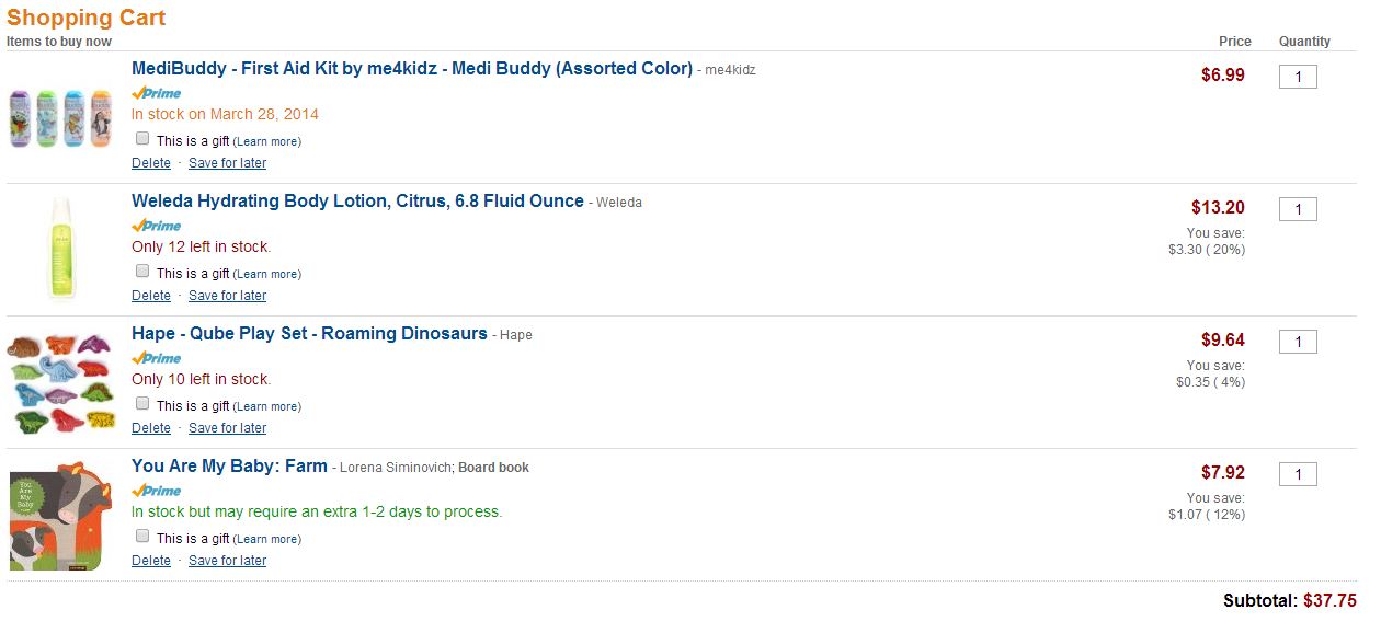 • Great variety of items. One month you might get a lunchbox, next month you get a bath toy, the following month you get a book. My subscription has helped stock my child’s little library and keep things on hand that I didn’t realize I needed, until I needed them. For example, I forgot to buy sunscreen, but luckily I just got some in my box last month.