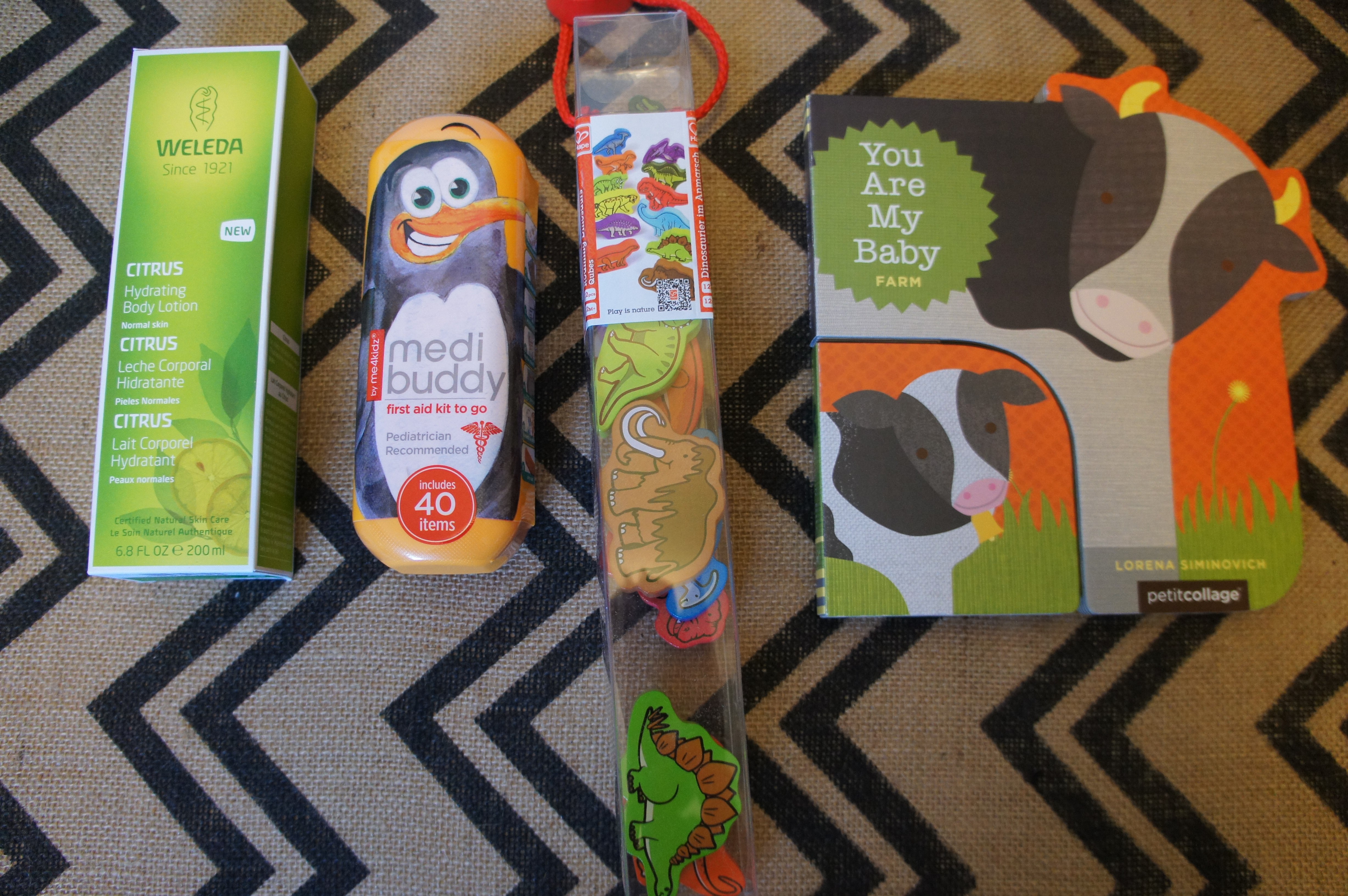 We also got this Medi Buddy, which has some bandaids, gauze, sting-relief pads, etc. Just a standard, cute little first aid kit. I threw it in my diaper bag and luckily haven’t gotten a chance to use it. But, I didn’t have any band-aids in my car or diaper bag before, so this worked for me. This is definitely something I wouldn’t have bought myself, but feel like is good to have on hand.