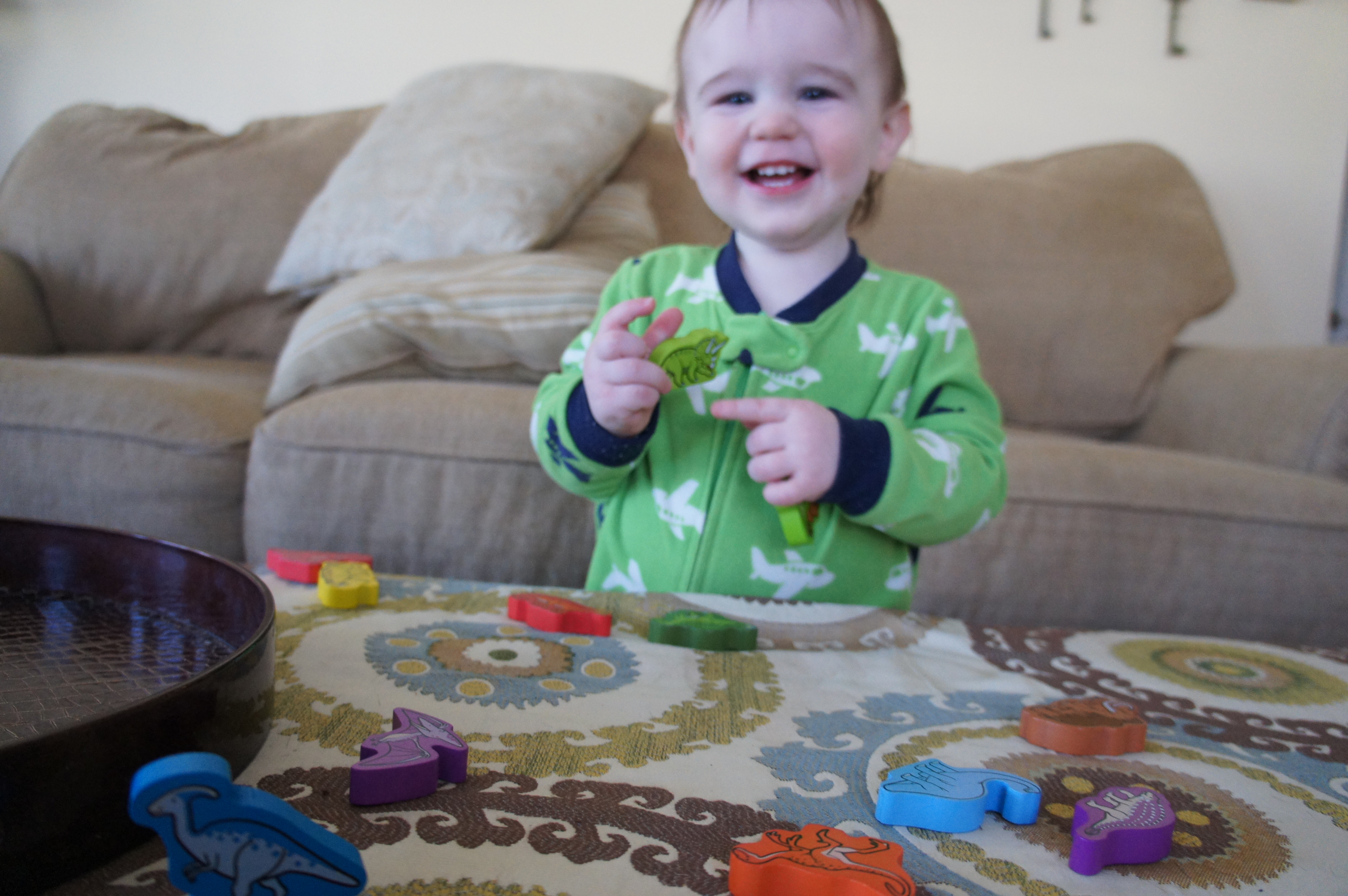 Playing with the dinosaurs “qubes” (qube is not a real word, let’s not pretend it’s a real word) made my husband and I realize that middle school way a long time ago and we’ve forgotten many of the dinosaurs’ names. My dear, resourceful and… creative husband now tells Daniel, “Here’s the tyrannosaurus rex, here’s the stegosaurus, here’s the… mommysaurus and there’s the daddyraptor…”