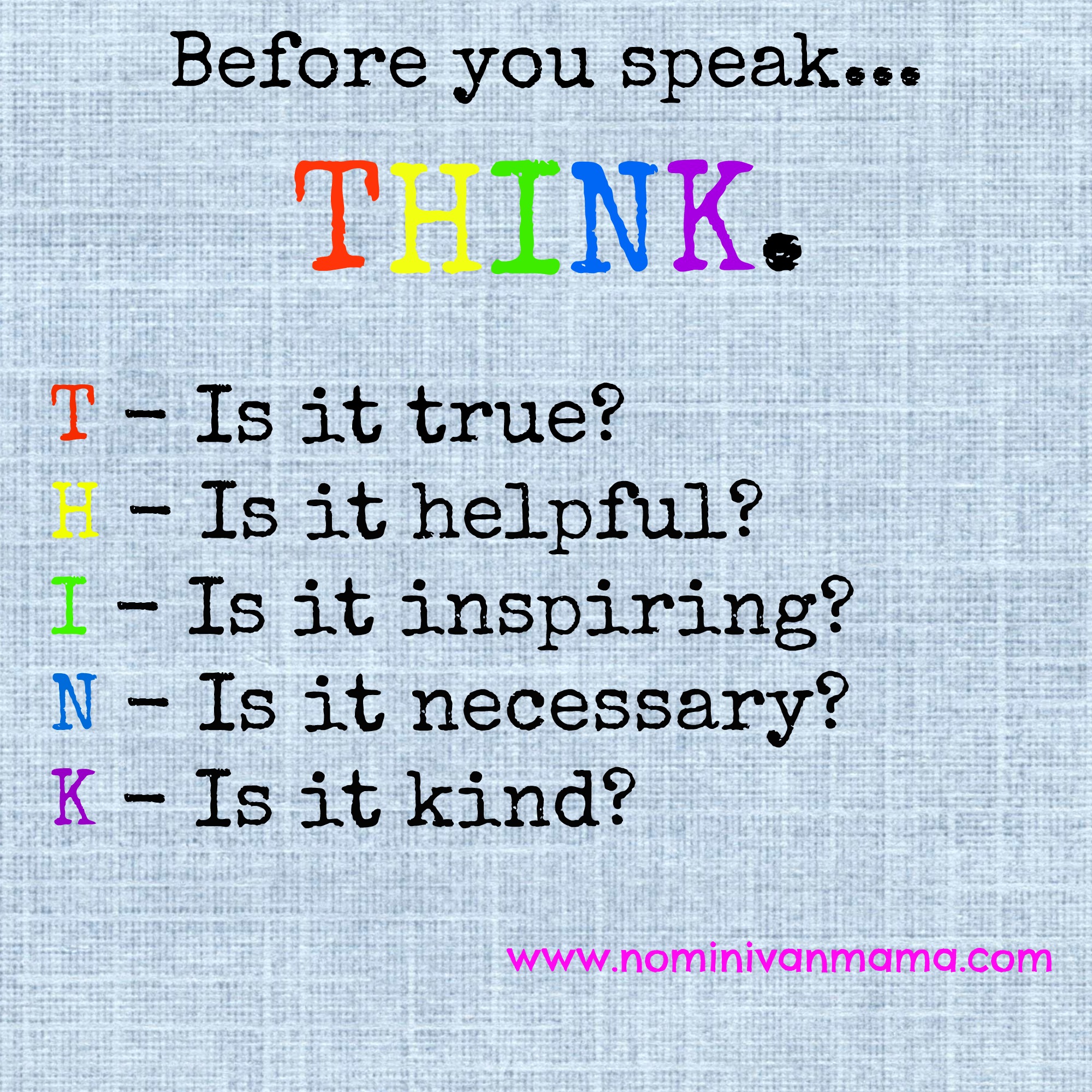 Before we say something, post something online, judge another way of parenting, offer unsolicited advice, I think we all could benefit from doing a little thinking before acting.