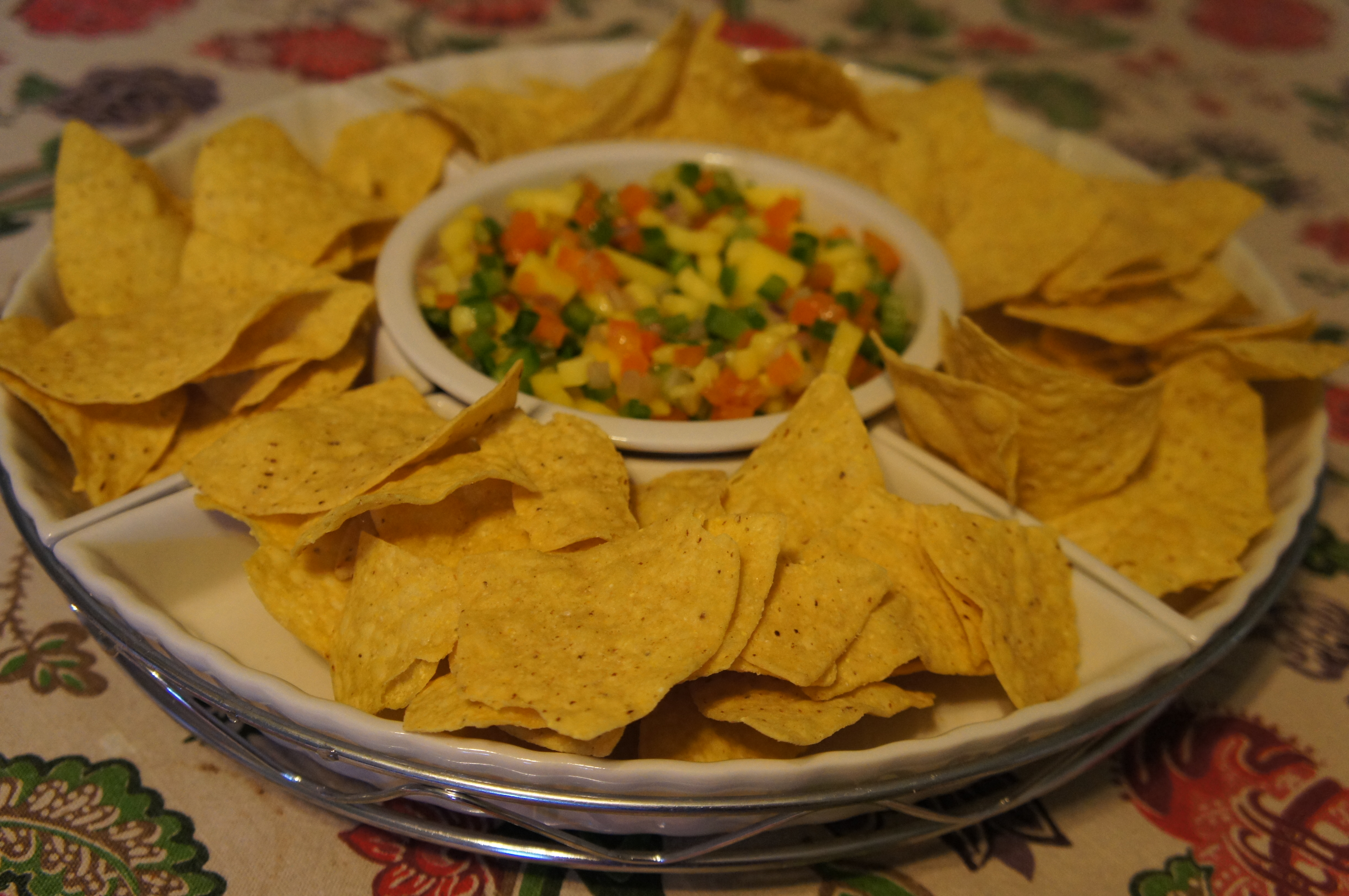 If you have a small family like mine, you’ll need to either invite the in-laws over or prepare your fridge for leftovers. Or both. Also, since this takes awhile to prepare, I like to serve it with a little mango salsa and chips so people can snack while the paella is simmering and enticing them.
