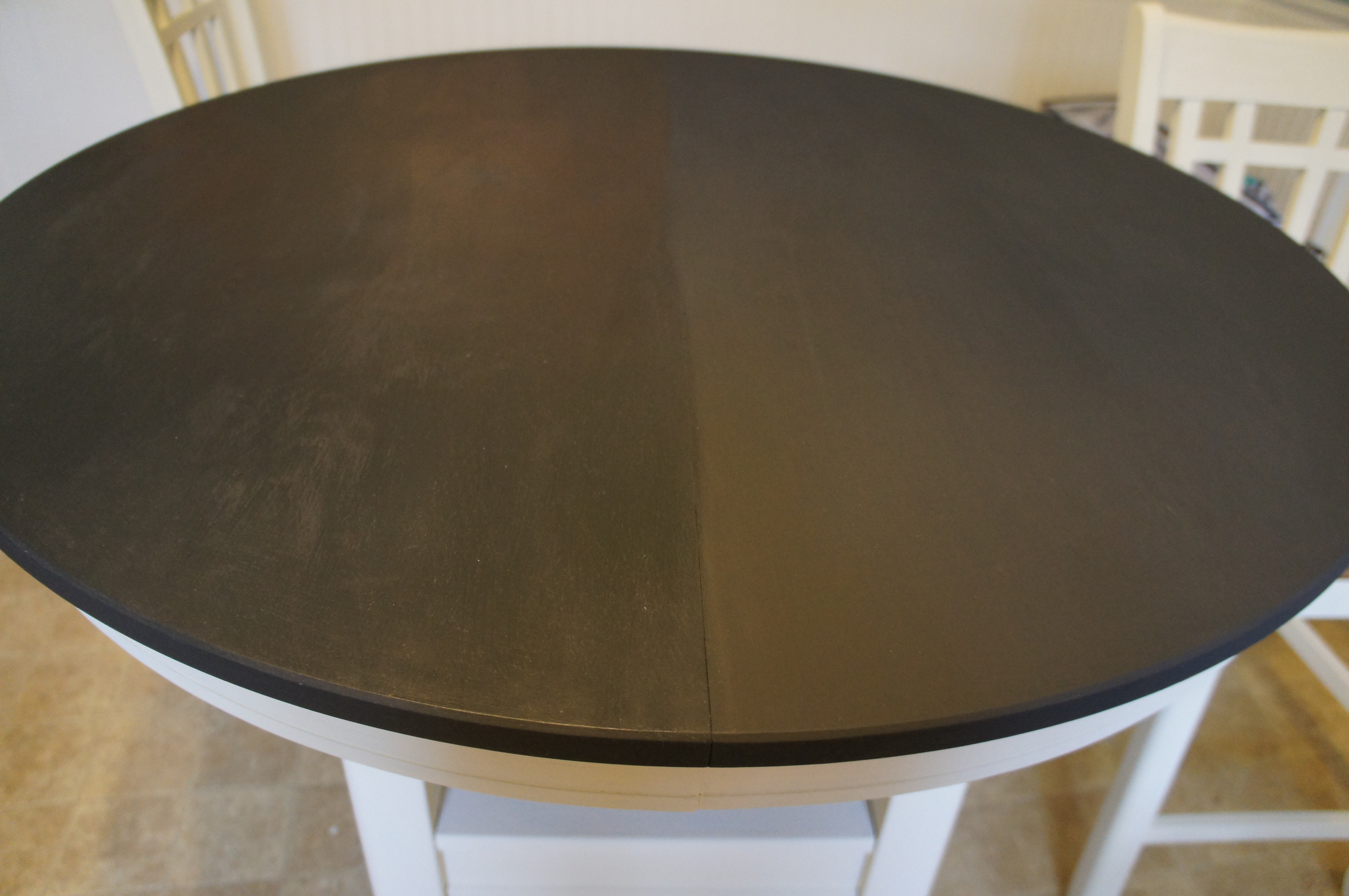 After a couple of coats, the top looked great! SONY DSCI chose Old White for the base and chairs and began painting the base. SONY DSCI added about the same, small amount of water in the Old White as I did in the Graphite. The chalk paint requires a minimum of two coats. So, if after one coat, your project looks awful, that’s perfect! That was definitely the case with the table. SONY DSCSo, just keep painting until you have the coverage you want.
